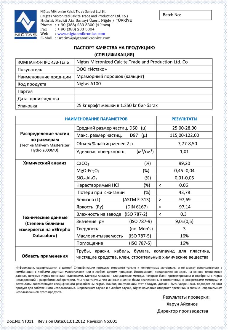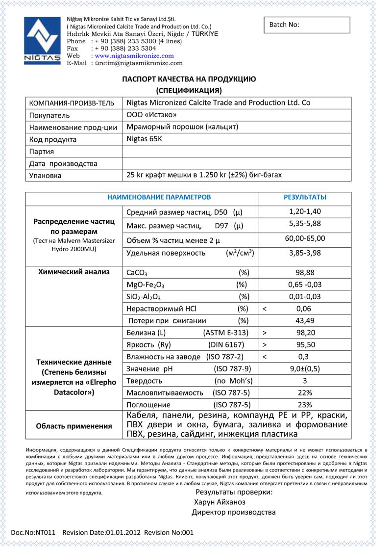 Кальциты широко используются в различных отраслях промышленности: в производстве различных видов красок для внешних и внутренних работ, эмалей, сухих строительных смесей, пластиковой вагонки и труб ПВХ, оконного профиля, пластмассовой и кабельной продукции, упаковочной пленки, искусственной кожи, покрытий для пола, резины, косметики, в качестве наполнителя и покрывающего агента при производстве бумаги, глянцевой бумаги, пористых материалов, сварочных электродов, кормов, жевательной резинки, лекарственных препаратов, ковровых покрытий и т.д.